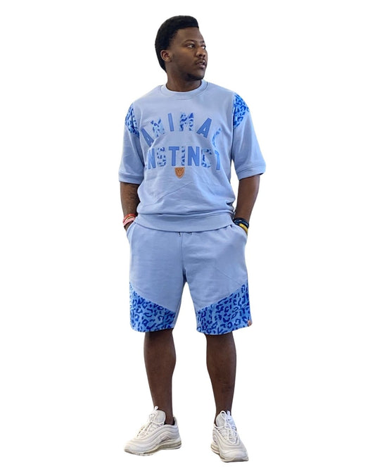 Animal Instinct Blue Leopard Short Sleeve Sweatshirt