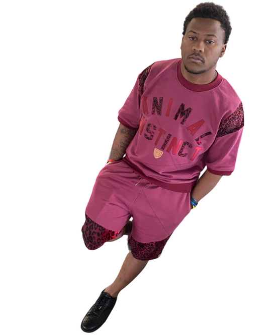 Animal Instinct Burgundy Leopard Short Sleeve Sweatshirt